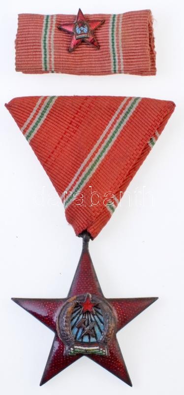 1949. "A Magyar Népköztársasági Érdemérem bronz fokozata" zománcozott bronz kitüntetés mellszalaggal, miniatűrrel szalagsávon T:2