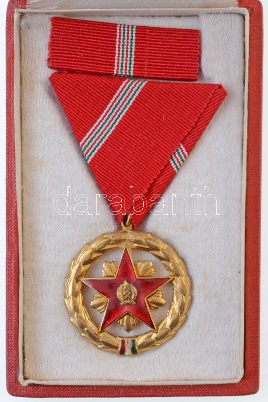 Leírás: 1954. "Szocialista Munkáért Érdemérem" zománcozott fém kitüntetés mellszalagon, szalagsávval, dísztokban T:1-