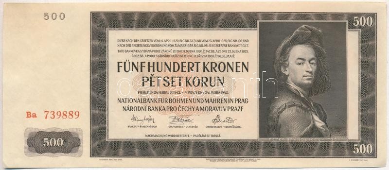 Német Harmadik Birodalom / Cseh-Morva Protektorátus 1942. 500K 2. kiadás T:I,I-