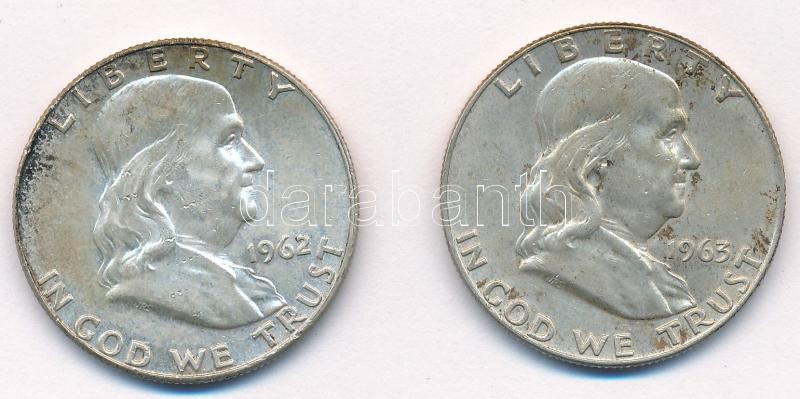 Amerikai Egyesült Államok 1962. 1/2$ Ag "Franklin" + 1963D 1/2$ Ag "Franklin" T:2,2- patina