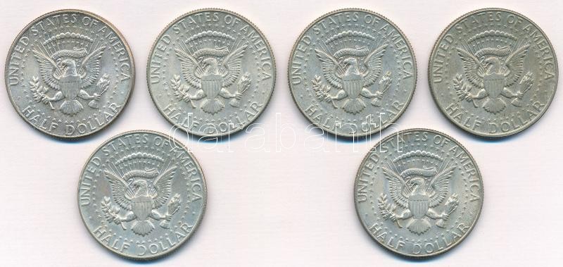 Amerikai Egyesült Államok 1964-1967. 1/2$ Ag "Kennedy" (4xklf) + 1968D-1969D 1/2$ Ag "Kennedy" (2xklf) T:1-