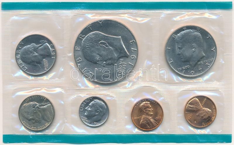 Amerikai Egyesült Államok 1973. 1c-1$ (7db, 6xklf) forgalmi sor lezárt fóliatokban T:1 USA 1973. 1 Cent - 1 Dollar (7pcs, 6xdiff) coin set in enclosed foil case C:UNC
