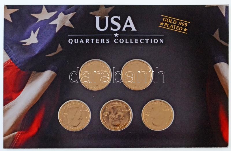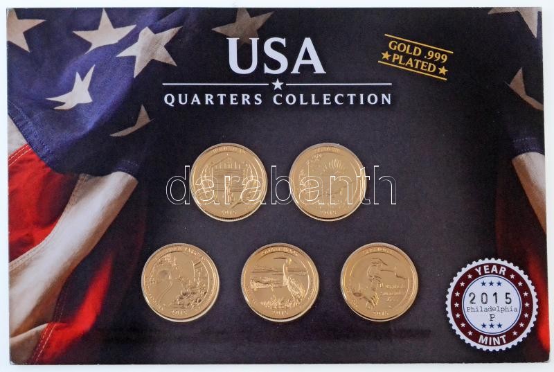 Amerikai Egyesült Államok 2015. 1/4$ "Nemzeti parkok - Bombay Hook, Blue Ridge Parkway, Kisatchie, Saratoga, Homestead" Cu-Ni (5xklf) aranyozott, karton díszlaponT:1- USA 2015. 1/4 Dollar "National Parks - Bombay Hook, Blue Ridge Parkway, Kisatchie, Saratoga, Homestead" Cu-Ni (5xdiff) gold plated, on cardboard display sheet C:AU
