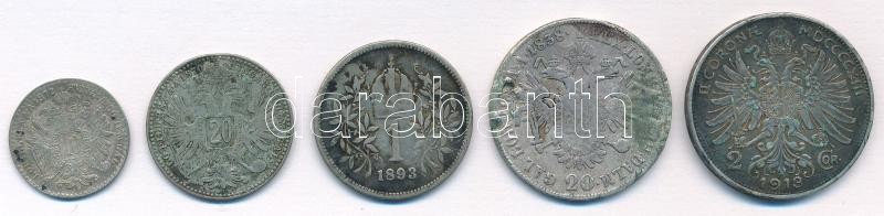 Ausztria 1838-1913. 10kr-2K Ag (5xklf) sérült osztrák ezüstpénz tétel T:2,2-,3 patina
