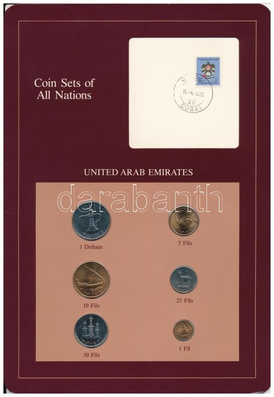 United Arab Emirates 1973-1984. 1 Fil - 1 Dirham (6xdiff) "Coin Sets of All Nations" coin set on cardboard with stamp C:UNC, AU