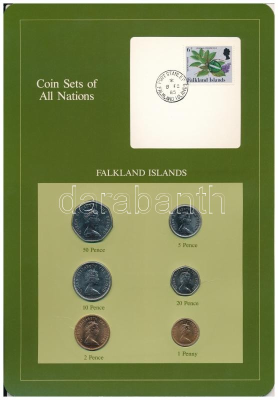 Leírás: Falkland-szigetek 1985. 1P - 50P (6xklf), "Coin Sets of All Nations" forgalmi szett felbélyegzett kartonlapon T:2 Falkland Islands 1985. 1 Penny - 50 Pence (6xdiff) "Coin Sets of All Nations" coin set on cardboard with stamp C:XF