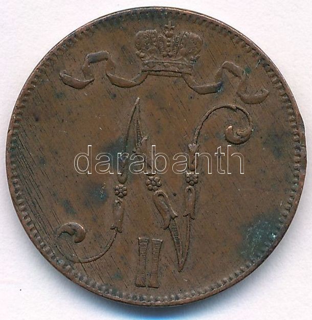 Finland 1916. 5... https://www.darabanth.com/hu/360-Gyorsarveres/360.0/Numizmatika/Kulfoldi-fem-es-ezustpenzek~2000014/Finnorszag-1916-5p-Cu-II-Miklos-T2-ph-Finland-1916-5-Pennia-Cu-Nicholas-II-CXF-edge-err~II2070185