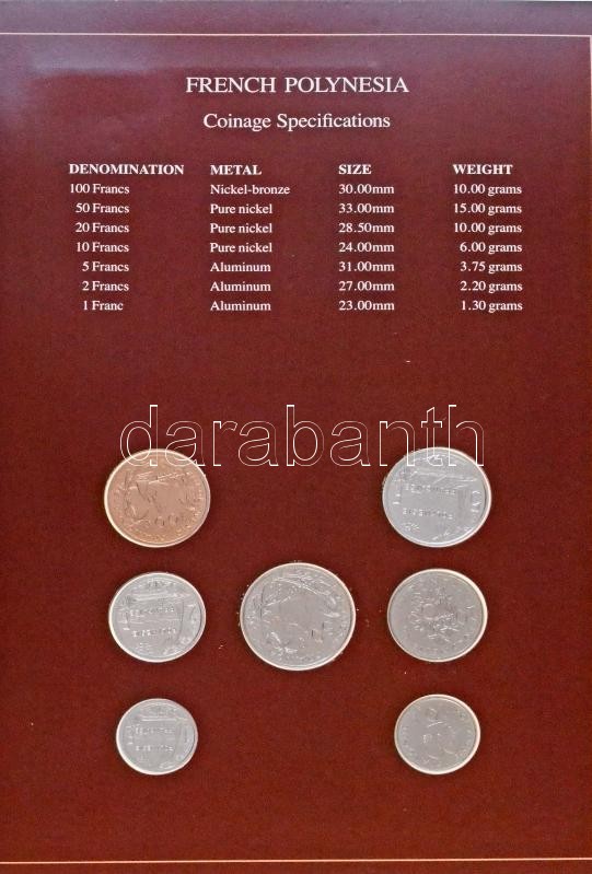 Francia-Polinézia 1984-1986. 1Fr - 100Fr (7xklf), "Coin Sets of All Nations" forgalmi szett felbélyegzett kartonlapon T:1