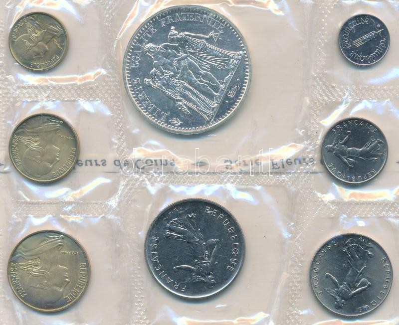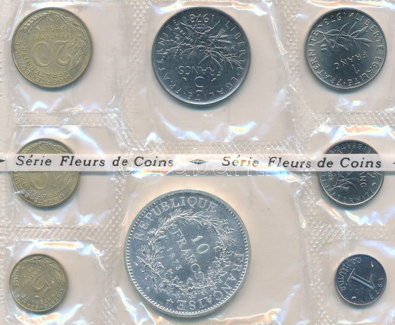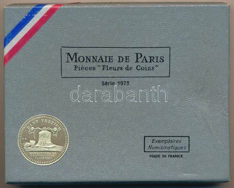Franciaország 1973. 1c-10Fr (8xklf) forgalmi sor lezárt fóliatokban, közte Ag érme, tanúsítvánnyal, karton dísztokban T:1