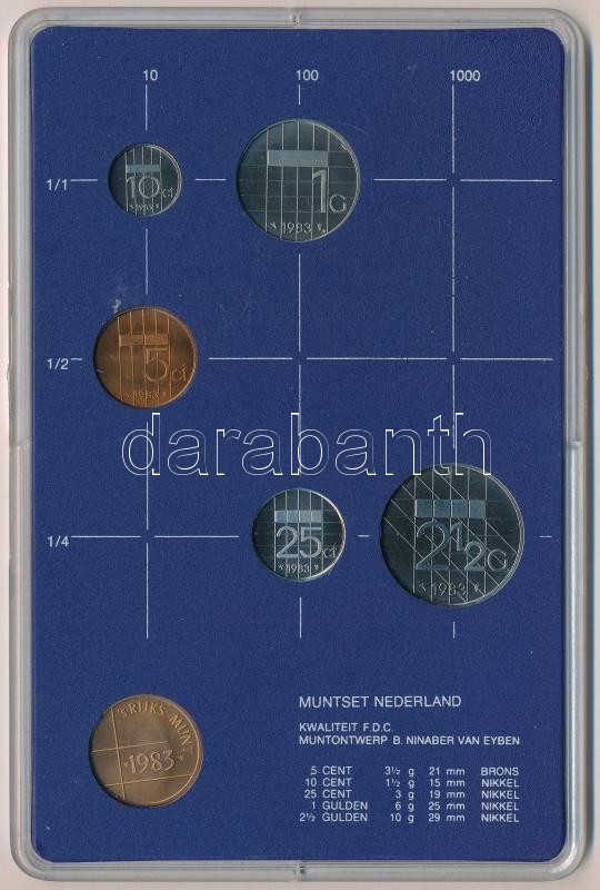 Leírás: Hollandia 1983. 10c-2 1/2G (5xklf) + "Utrechti Verde" zseton plasztiktokos szettben T:1 Netherlands 1983. 10 Cent - 2 1/2 Gulden (5xdiff) + "Utrecht Mint" jeton in plastic case C:UNC