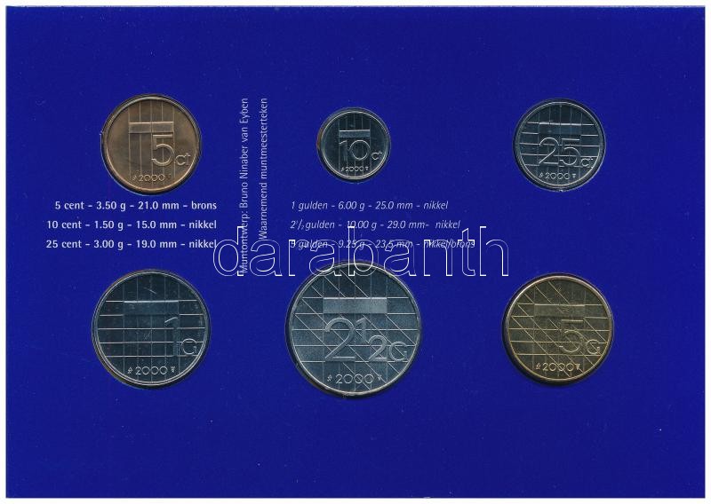 Hollandia 2000. 5c-5G (6xklf) forgalmi sor karton dísztokban T:1 Nethe... https://www.darabanth.com/hu/360-Gyorsarveres/360.0/Numizmatika/Kulfoldi-fem-es-ezustpenzek~2000014/Hollandia-2000-5c-5G-6xklf-forgalmi-sor-karton-disztokban-T1-Netherlands-2000-5-Cents-5-Guld~II2070009