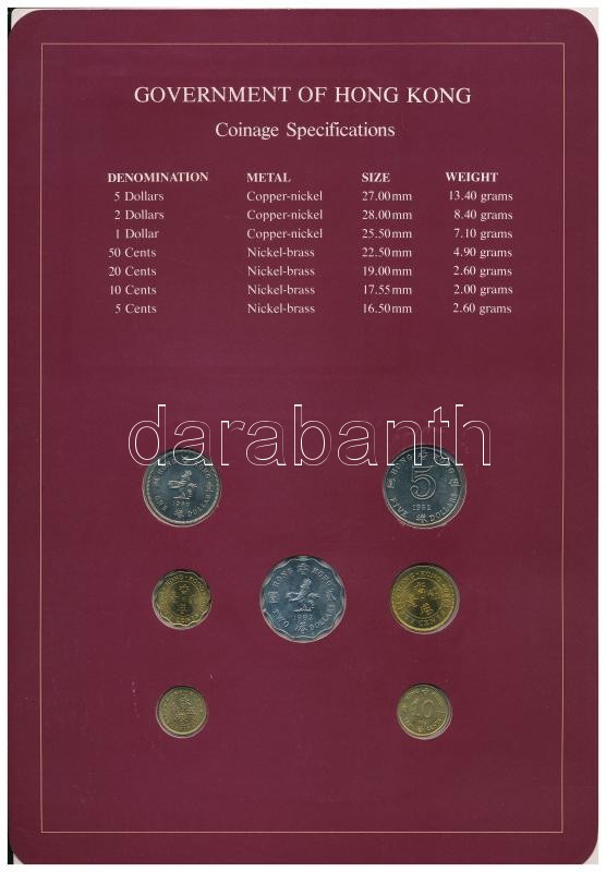 Hong Kong 1979-1982. 5 Cents - 5 Dollar (7xdiff) "Coin Sets of All Nations" coin set on cardboard with stamp C:AU,XF