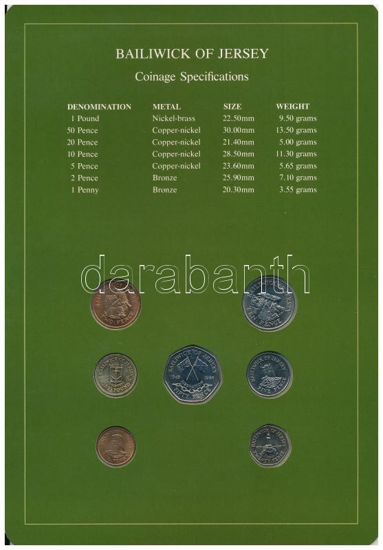 Jersey 1984-1985. 1P - 1Ł (7xklf), "Coin Sets of All Nations" forgalmi szett felbélyegzett kartonlapon T:1,1- patina