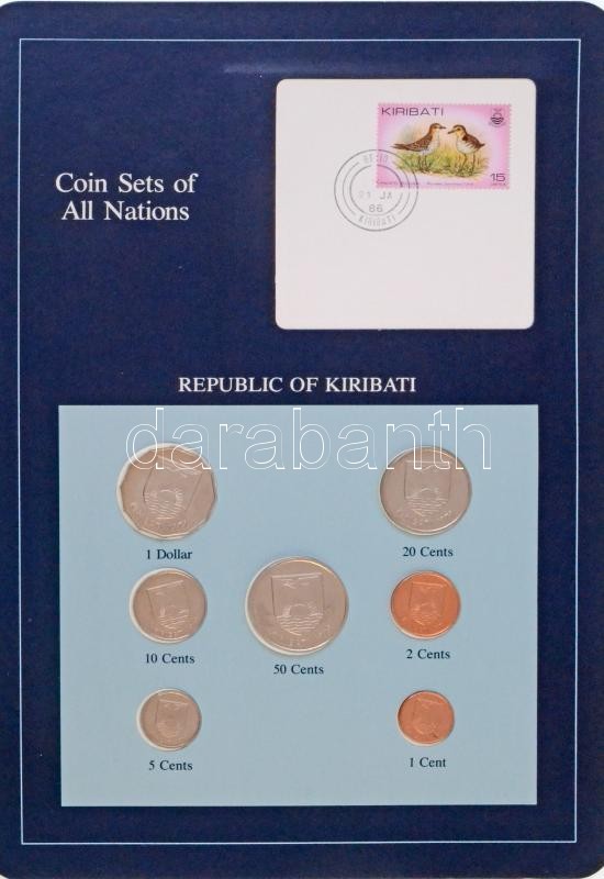 Kiribati 1979. 1 Cent - 1 Dollar (7xdiff) "Coin Sets of All Nations" coin set on cardboard with stamp C:UNC