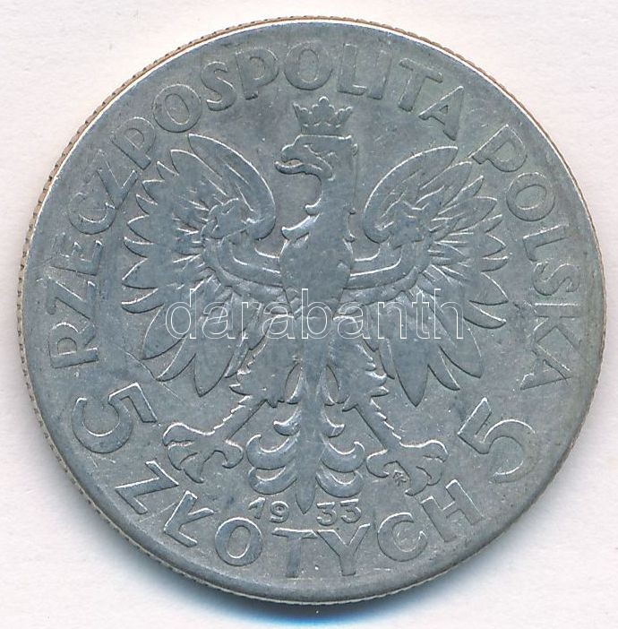 Leírás: Lengyelország 1933. 5Zl Ag T:3
