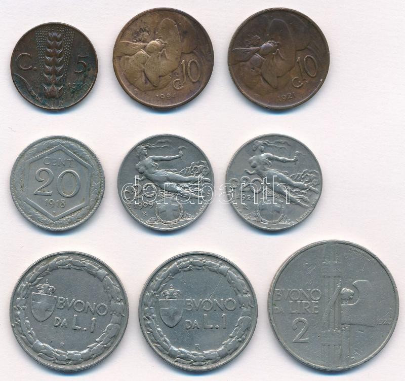 Italy 1909-1930. 5 Cen... https://www.darabanth.com/hu/360-Gyorsarveres/360.0/Numizmatika/Kulfoldi-fem-es-ezustpenzek~2000014/Olaszorszag-1909-1930-5c-2L-9db-8xklf-T2-Italy-1909-1930-5-Cents-2-Lire-9pcs-8xdiff-C~II2078476