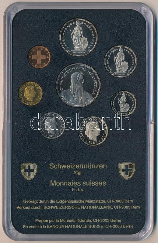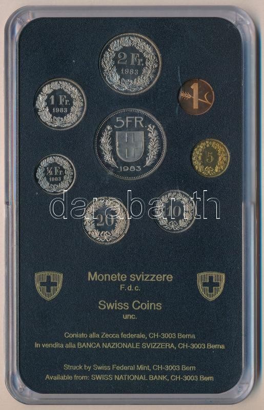 Switze... https://www.darabanth.com/hu/360-Gyorsarveres/360.0/Numizmatika/Kulfoldi-fem-es-ezustpenzek~2000014/Svajc-1983-1r-5Fr-8xklf-forgalmi-szett-muanyag-tokban-TPP--Switzerland-1983-1-Rappen-5-Fra~II2069575