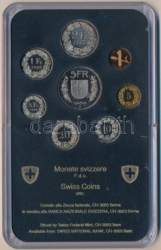 Leírás: Svájc 1988. 1r-5Fr (8xklf) forgalmi szett műanyag tokban T:PP