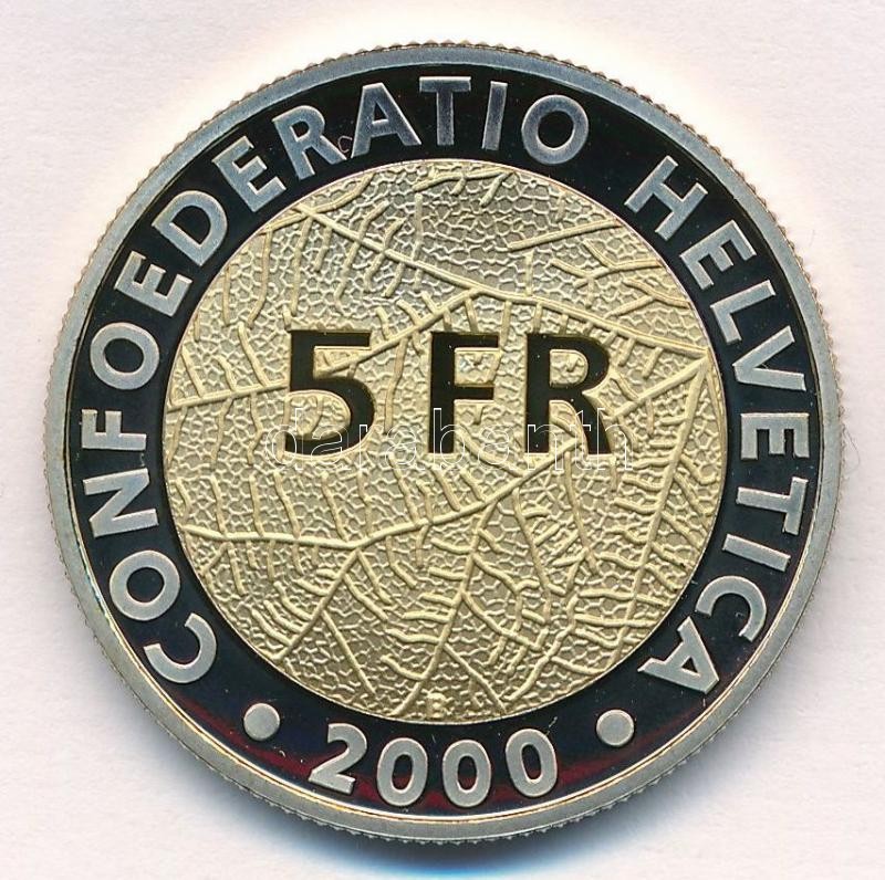 Svájc 2000. 5Fr "Svájci Frank 150. évfordulója" eredeti dísztokban, tanúsítvánnyal T:PP
