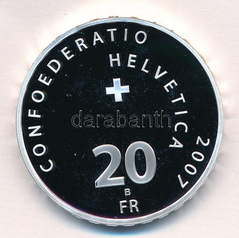 Svájc 2007. 20Fr Ag "Svájci Nemzeti Bank" eredeti dísztokban, tanúsítvánnyal T:PP