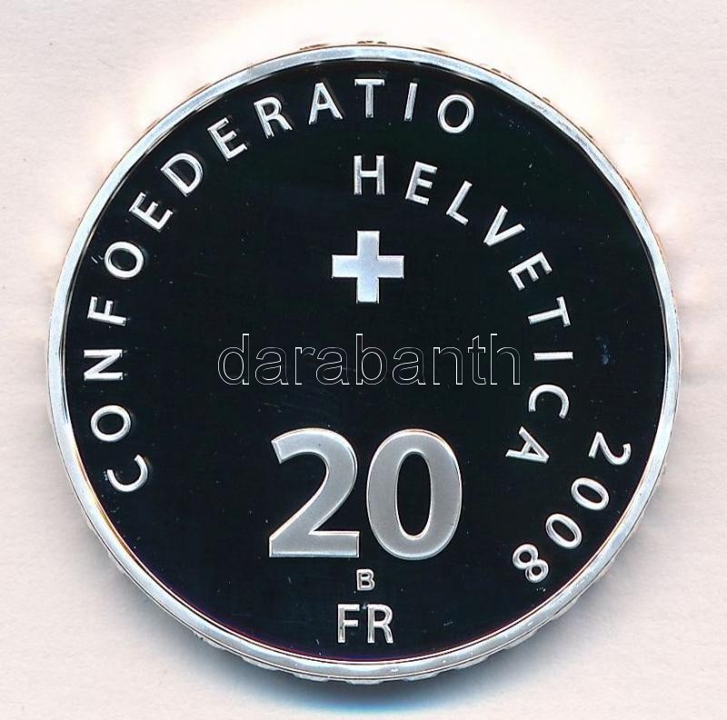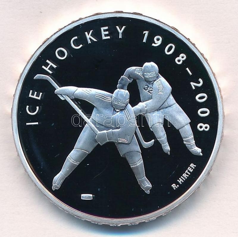 Switzerland 2008. 20 Francs Ag "Ice hockey 1908-2008" in original case with certificate C:PP