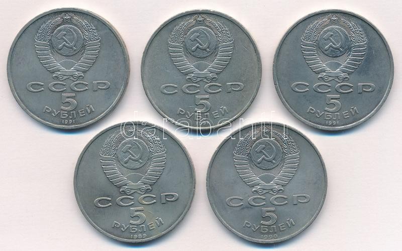 Soviet Union 1989-1991. ... https://www.darabanth.com/hu/360-Gyorsarveres/360.0/Numizmatika/Kulfoldi-fem-es-ezustpenzek~2000014/Szovjetunio-1989-1991-5R-Cu-Ni-5xklf-T1--Soviet-Union-1989-1991-5-Rubles-Cu-Ni-5xdiff-CAU~II2072320