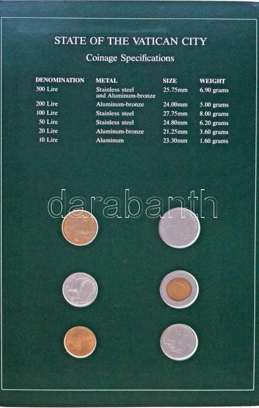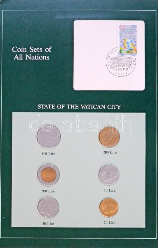 Vatikán 1985. 10L - 500L (6xklf), "Coin Sets of All Nations"... https://www.darabanth.com/hu/360-Gyorsarveres/360.0/Numizmatika/Kulfoldi-fem-es-ezustpenzek~2000014/Vatikan-1985-10L-500L-6xklf-Coin-Sets-of-All-Nations-forgalmi-szett-felbelyegzett-kartonla~II2073077