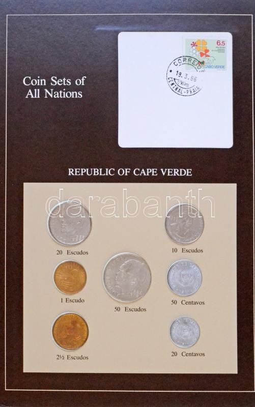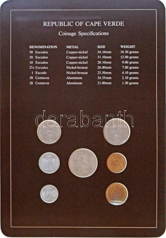 Cape Verde 1977-1982. 20 Centavos - 50 Escudos (7xdiff) "Coin Sets of All Nations" coin set on cardboard with stamp C:AU,XF