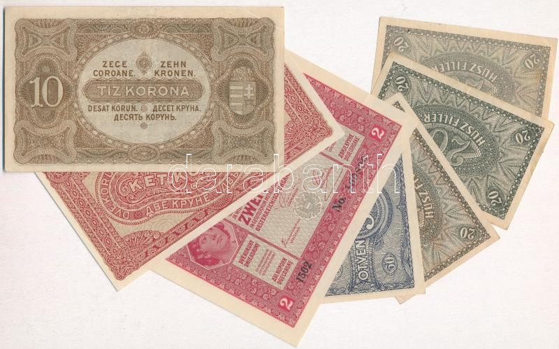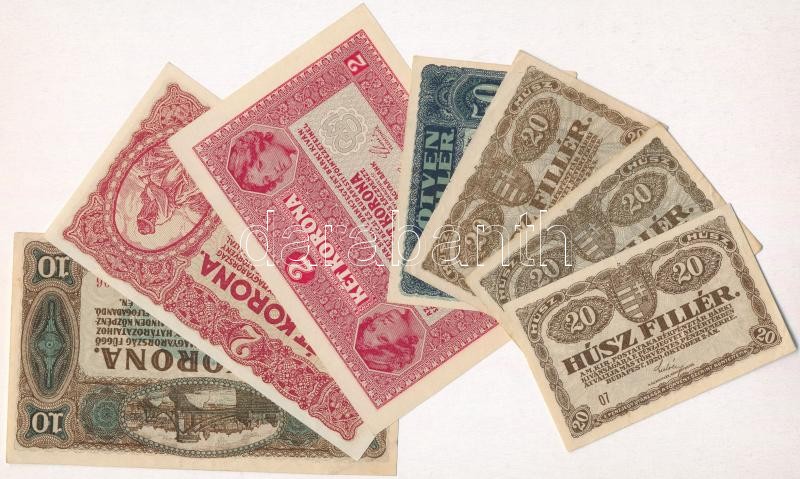 1917-1920. 20f-10K (7x) T:I-III https://www.darabanth.com/hu/360-Gyorsarveres/360.0/Numizmatika/Magyar-bankjegyek~2000007/1917-1920-20f-10K-7x-TI-III~II2076809
