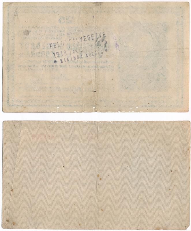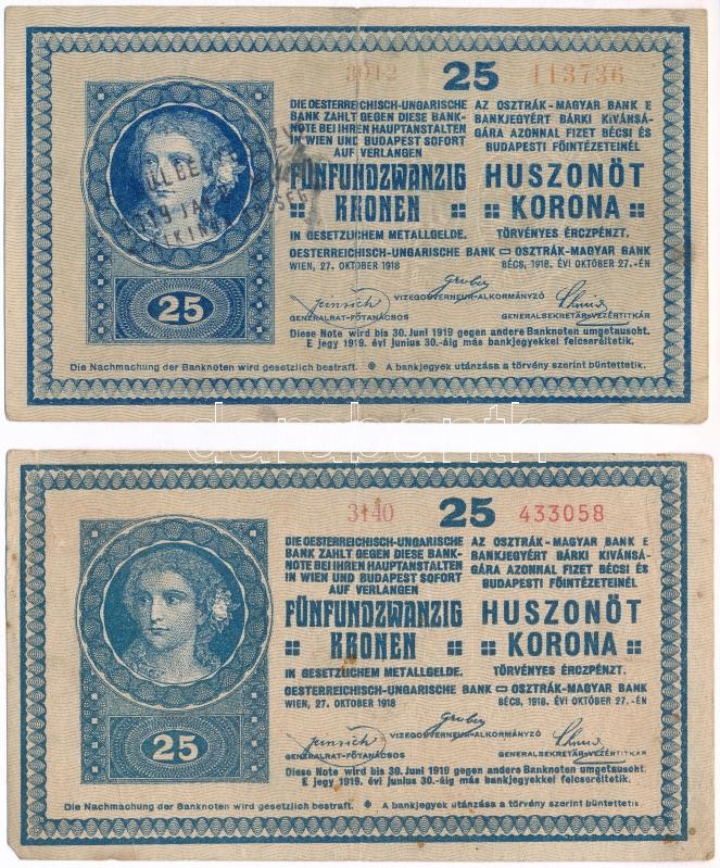Leírás: 1918. 25K (2x) egyik felülbélyegzett, sima hátlappal, a másik hullámos hátlappal T:III