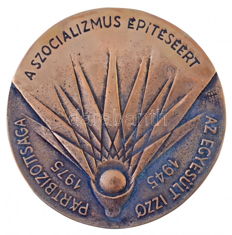 Leírás: 1978. "A szocializmus építéséért - Az Egyesült Izzó Pártbizottsága 1945-1975" egyoldalas, öntött Br plakett, eredeti tokban (103mm) T:1