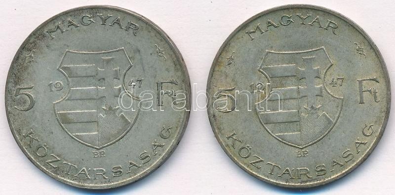 Leírás: 1947. 5Ft Ag "Kossuth" (2x) T:2- patina Adamo F8.1