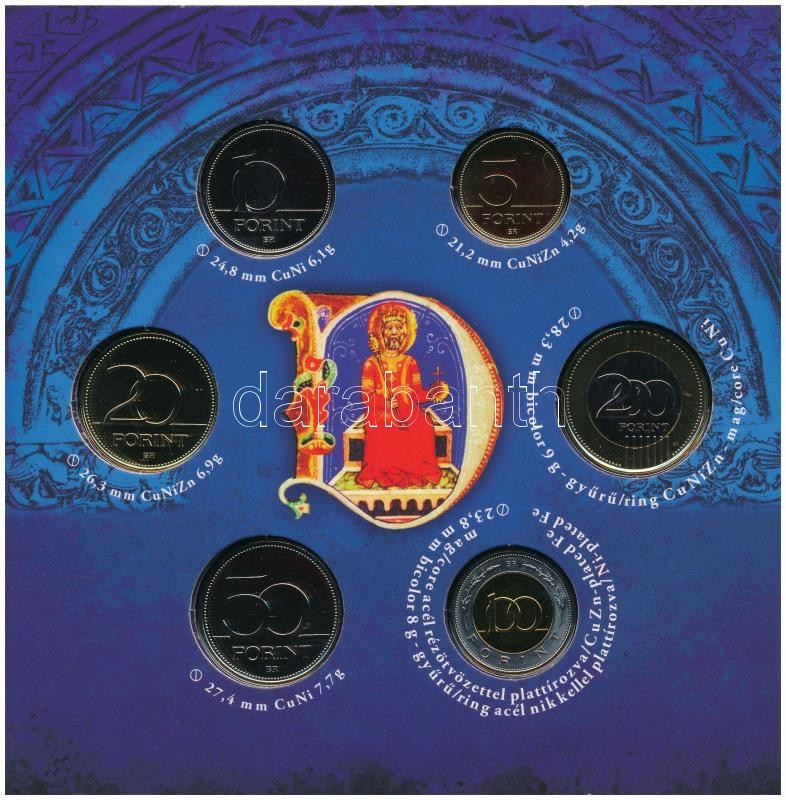 Leírás: 2014. 5Ft-200Ft (6xklf) "Lancea Regis" forgalmi sor szettben, benne ónozott réz Szent István denár utánzat érme T:BU