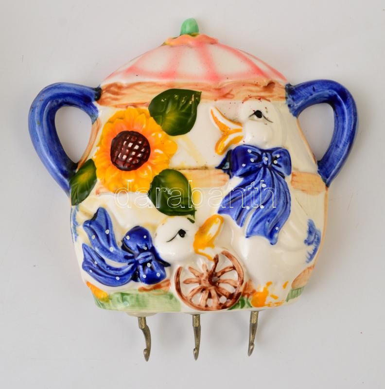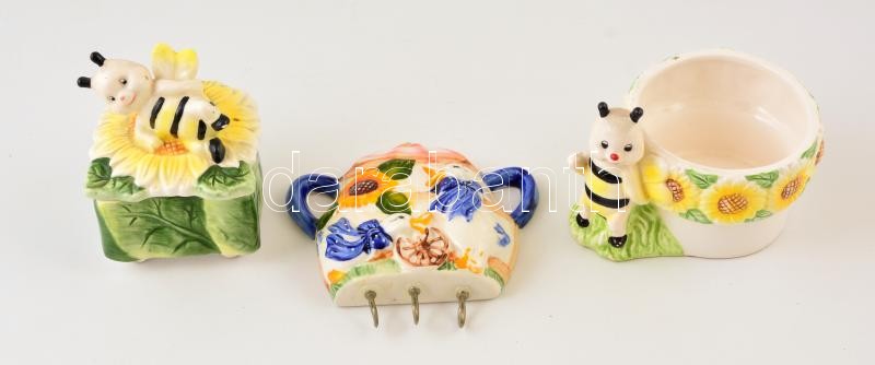 Leírás: 3 db konyhai, figurális kerámia edény: cukortartó, bögre, kanál akasztó