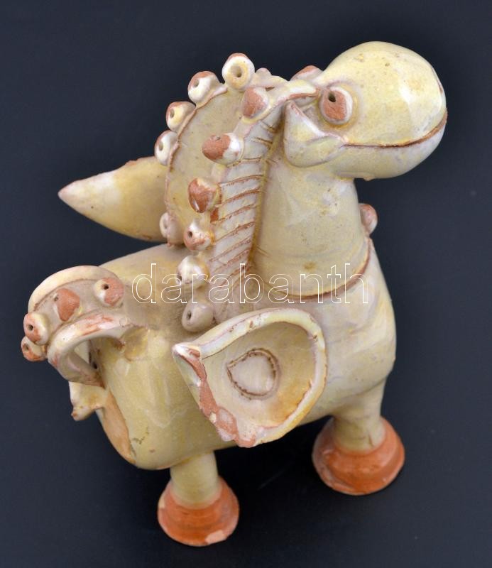 Leírás: Csavlek Etelka (1947-): Pegazus. Festett mázas kerámia, jelzett, apró lepattanással, m: 17 cm