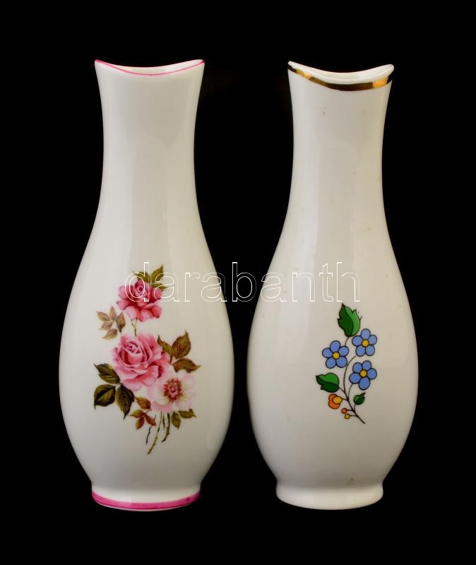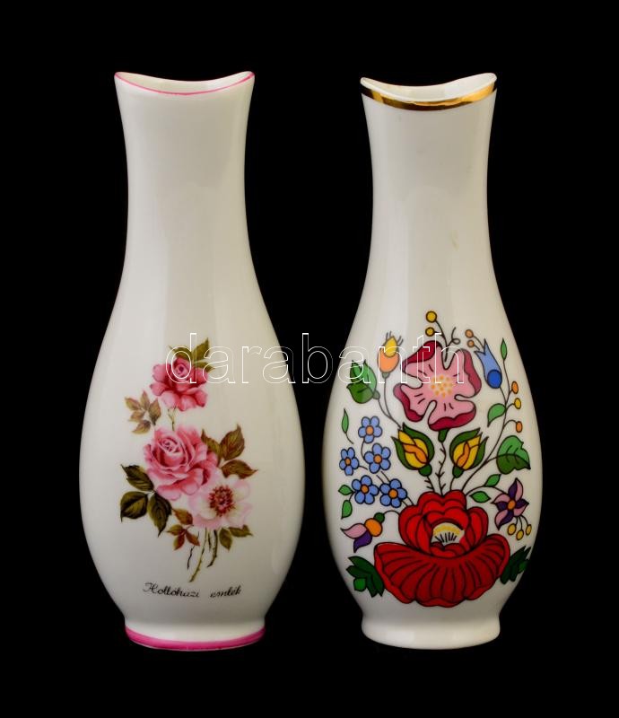 Leírás: Hollóházi virágmintás porcelán emlékváza, és váza, matricásak, jelzett, apró kopásnyomokkal, m: 17 cm