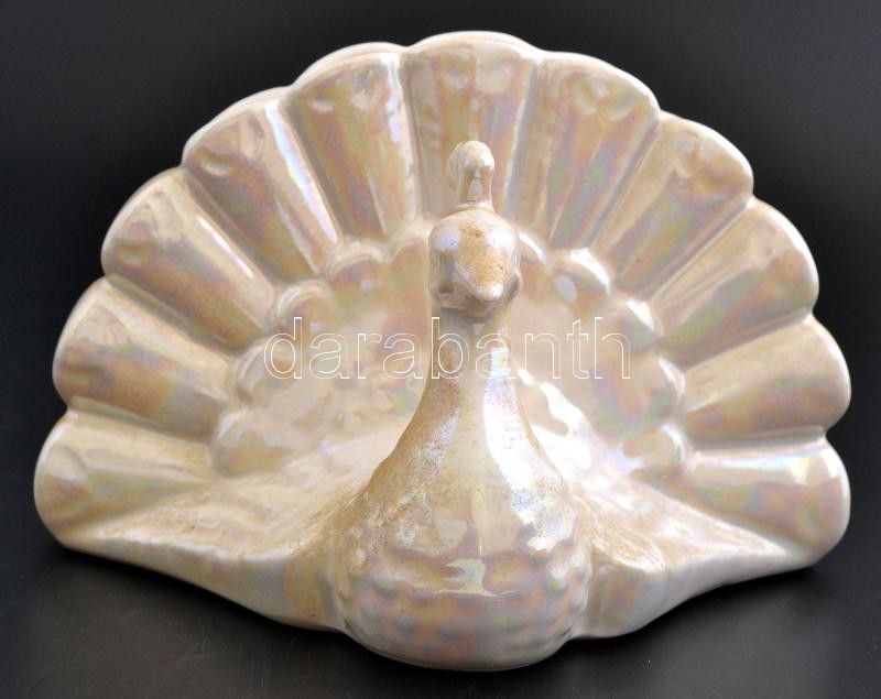 Irizáló pávás szalvétatartó, mázas fajansz, apró kopásokkal, m: 12 cm https://www.darabanth.com/hu/360-Gyorsarveres/360.0/Porcelan-keramia-uveg/Porcelan~500007/Irizalo-pavas-szalvetatarto-mazas-fajansz-apro-kopasokkal-m-12-cm~II2060604