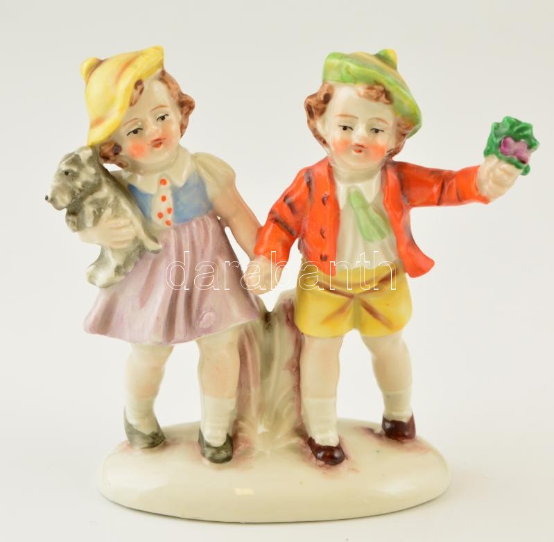 Jelzés nélkül: Fiatal pár, kutyával. Hibátlan m:13 cm https://www.darabanth.com/hu/360-Gyorsarveres/360.0/Porcelan-keramia-uveg/Porcelan~500007/Jelzes-nelkul-Fiatal-par-kutyaval-Hibatlan-m13-cm~II2070225