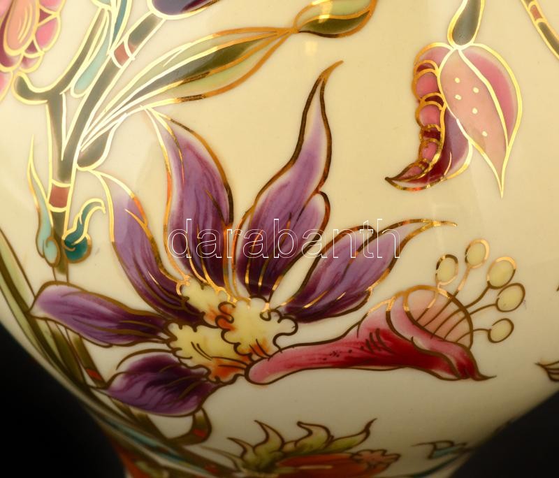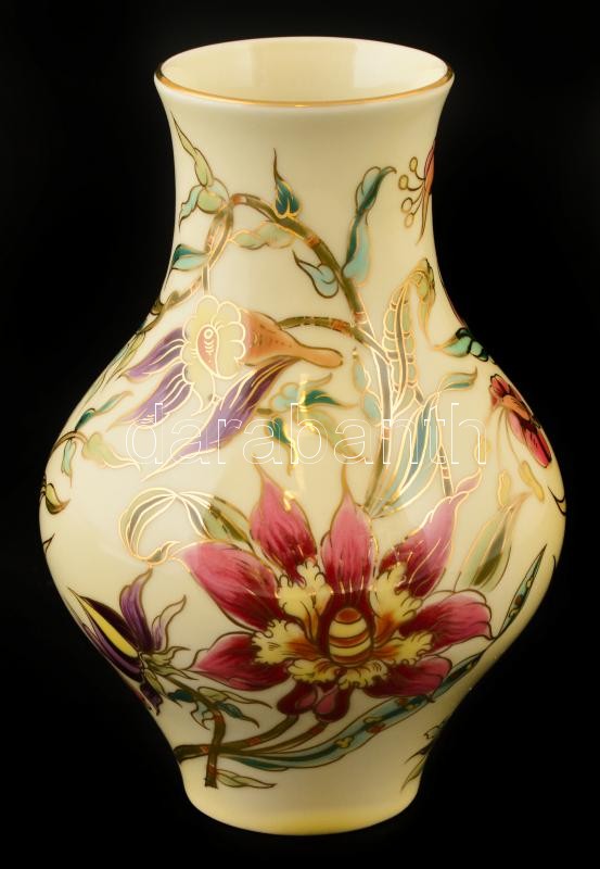 Leírás: Zsolnay virág mintás váza, kézzel festett, jelzett, apró kopásnyomokkal, m:18 cm