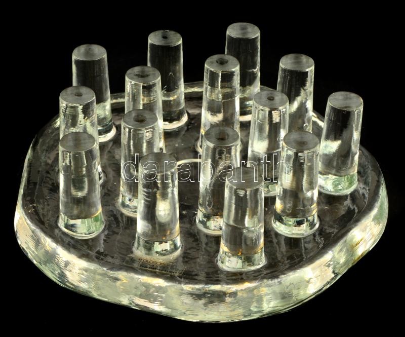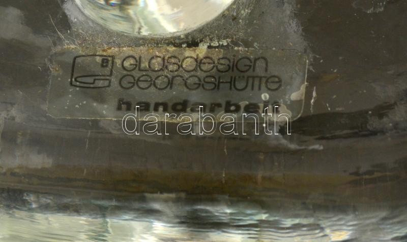 Leírás: Georg Shutte kézi készítésű üveg lábostartó, jelzett. d: 19 cm