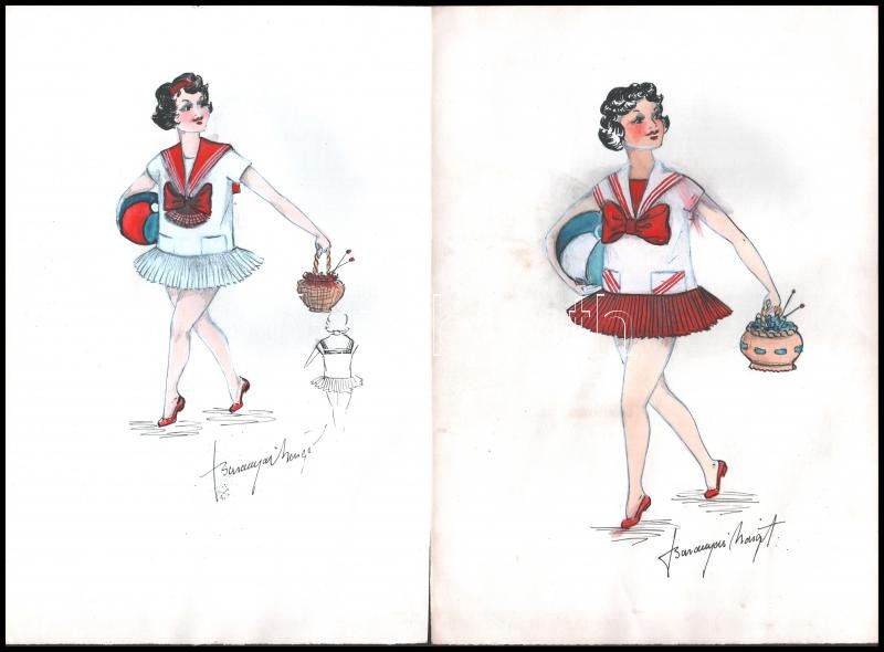 Leírás: Baranyai Margit: 5 db divatterv, ruhaterv, Akvarell, papír. Jelzett. 29x21 cm