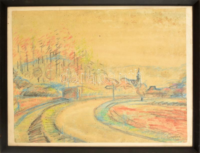 Leírás: Egry jelzéssel: Városhatár. Pasztell, papír, foltos, üvegezett keretben, 42×58 cm