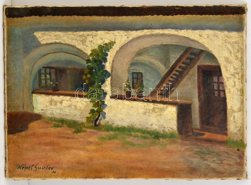 Hénel Gusztáv (1887-1966): Tornác részlet. Olaj, vászon, jelzett, sérü... https://www.darabanth.com/hu/361-Gyorsarveres/361.0/Festmenyek-es-grafikak/Festmenyek-es-grafikak~500001/Henel-Gusztav-1887-1966-Tornac-reszlet-Olaj-vaszon-jelzett-serult-44C39759-cm~II1761844