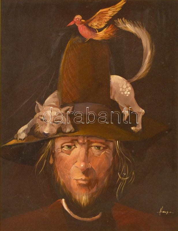 Leírás: Herpai Zoltán (1951-2011): Csavargó. Olaj, farost, jelzett, keretben, 40×30 cm