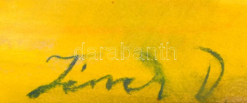 Leírás: Jándi jelzéssel: Házak a völgyben. Pasztell, papír, üvegezett keretben, 29×40 cm