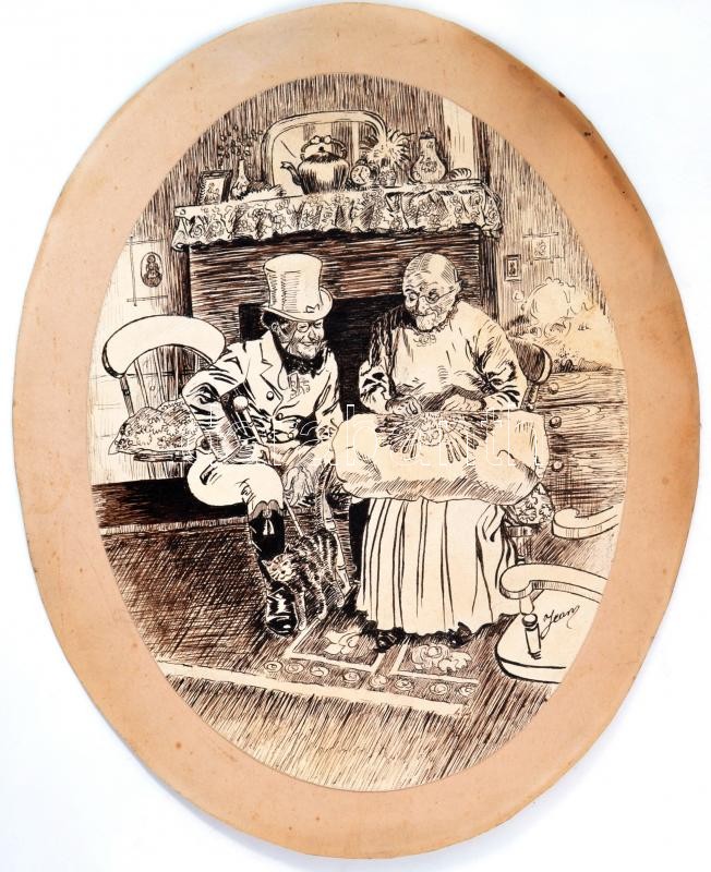 Jean jelzéssel: Idős pár. Tus, papír, 25×19 cm https://www.darabanth.com/hu/361-Gyorsarveres/361.0/Festmenyek-es-grafikak/Festmenyek-es-grafikak~500001/Jean-jelzessel-Idos-par-Tus-papir-25C39719-cm~II2080731