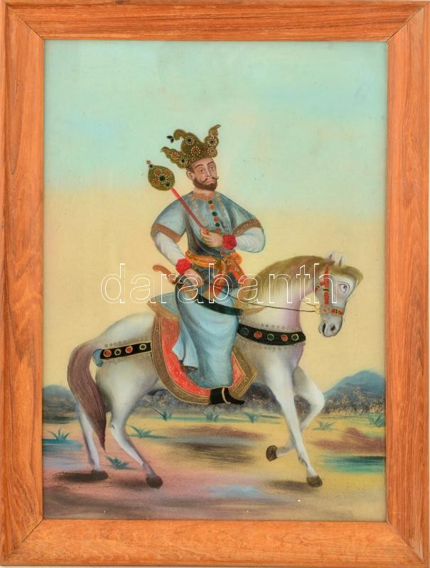 Leírás: Jelzés nélkül: Indiai nemes. Festett üvegkép, keretben, 49×36 cm