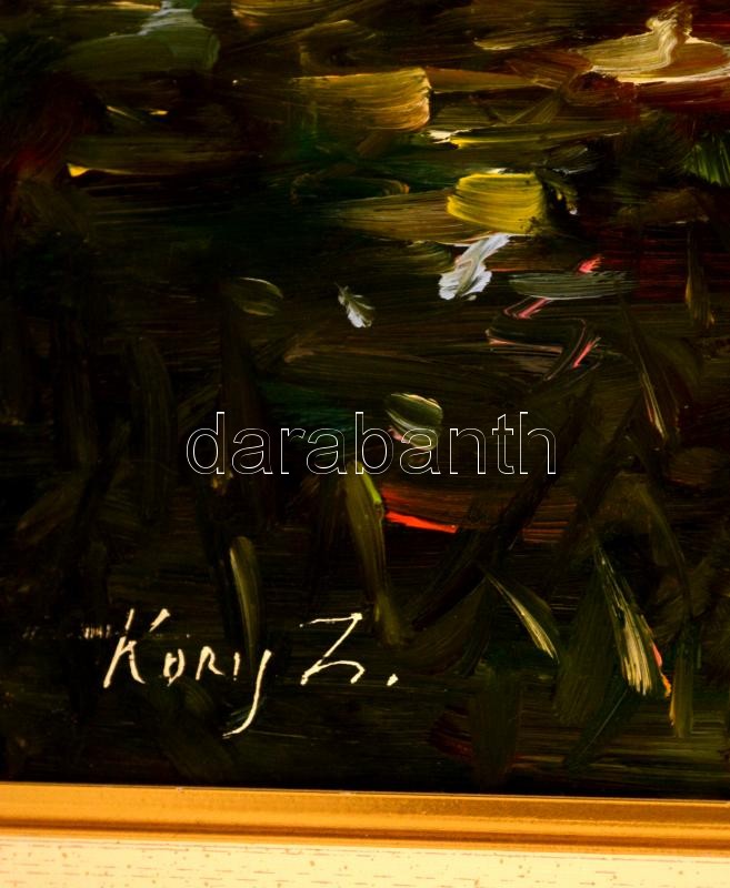 Leírás: Kőris Zoltán (?-): Kacsák. Olaj, farost, jelzett, újszerű keretben, 30×40 cm