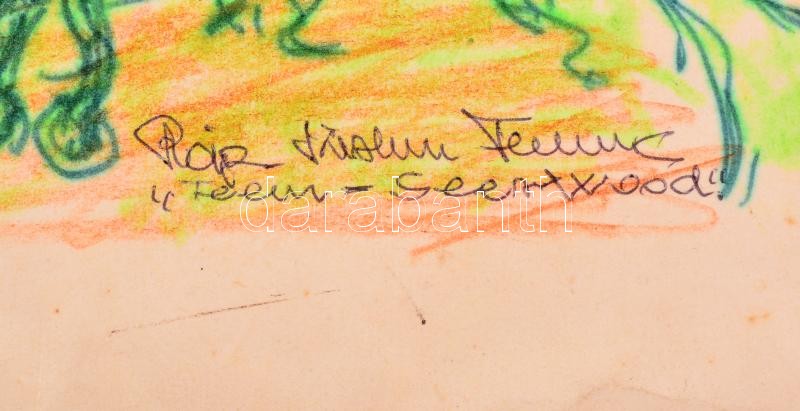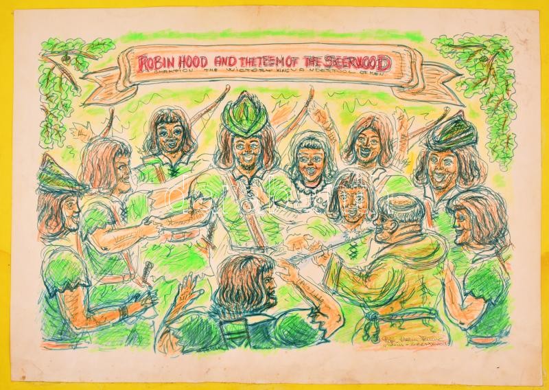 Leírás: Olvashatatlan jelzéssel: Robin Hood and the teem of Seerwood. Vegyes technika, papír, 42×60 cm