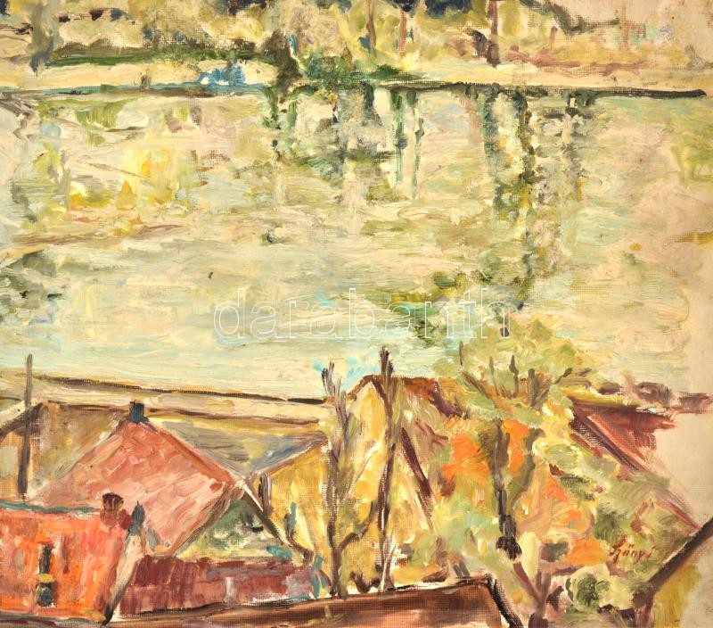 Szőnyi jelzéssel: Folyópart háztetőkkel. Olaj, papír, 28×32 cm https://www.darabanth.com/hu/361-Gyorsarveres/361.0/Festmenyek-es-grafikak/Festmenyek-es-grafikak~500001/Szonyi-jelzessel-Folyopart-haztetokkel-Olaj-papir-28C39732-cm~II2080219